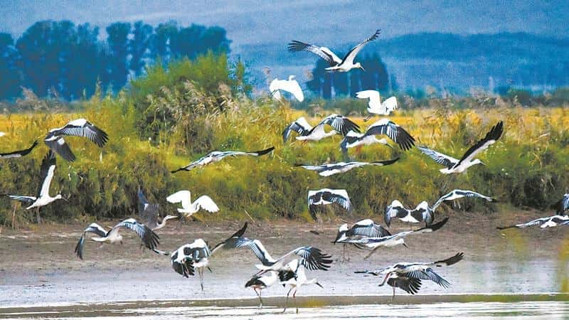 日前,在黑龙江省迎春林业局有限公司所辖林区内,近百只东方白鹳翩然而至,它们时而漫步在稻田田埂,时而飞至附近的鱼塘抓鱼。据当地群众介绍,这么大群东方白鹳“驾临”,在迎春林区比较少见。日前,在黑龙江省迎春林业局有限公司所辖林区内,近百只东方白鹳翩然而至,它们时而漫步在稻田田埂,时而飞至附近的鱼塘抓鱼。据当地群众介绍,这么大群东方白鹳“驾临”,在迎春林区比较少见。