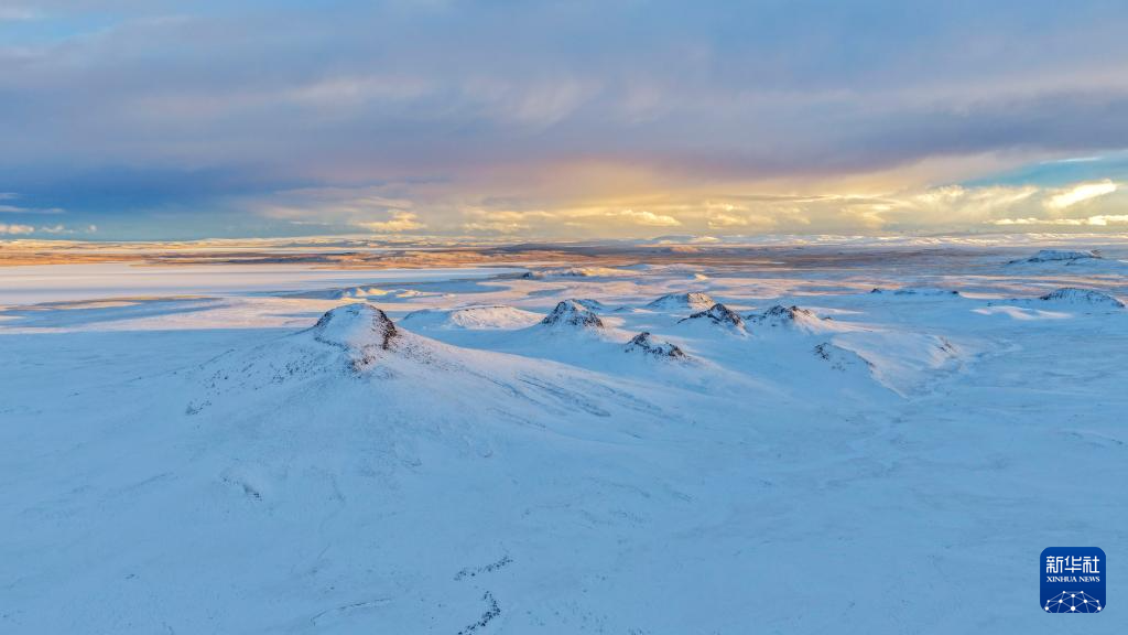 4月11日,羌塘国家级自然保护区那曲地区管理局专业管护队在“巴毛穷宗”地区雪中宿营(无人机照片)。新华社记者 姜帆 摄