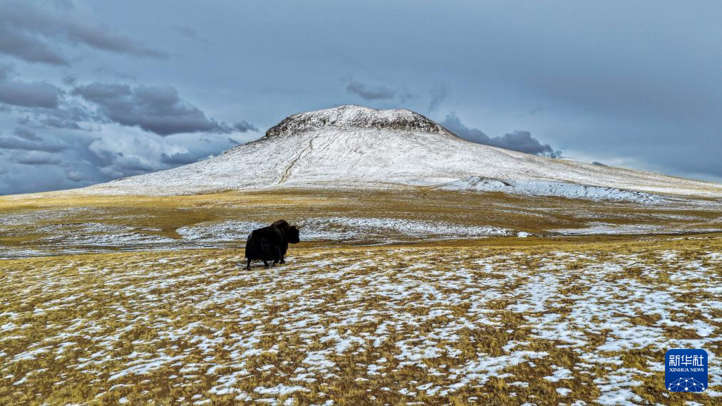 4月10日在“巴毛穷宗”地区拍摄的野牦牛(无人机照片)。新华社发(梁春宁摄)