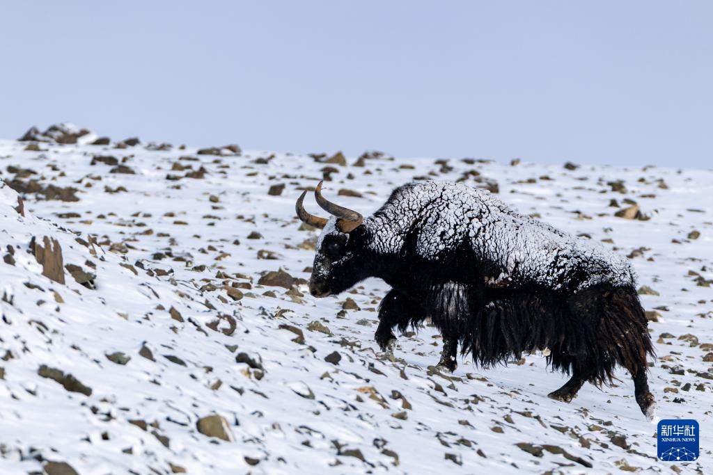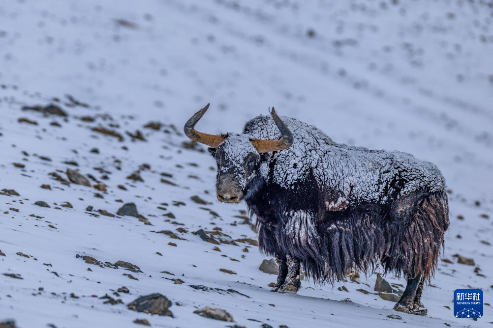 4月10日在“巴毛穷宗”地区拍摄的野牦牛。新华社记者 姜帆 摄