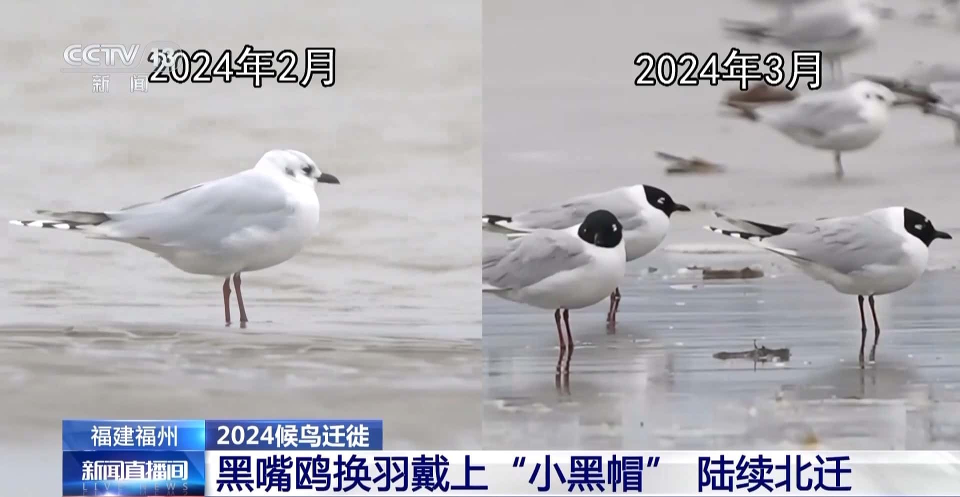 除了小天鹅“丢丢”,在闽江河口湿地,还观测到了黑嘴鸥的身影。它们是去年11月来到闽江河口湿地的。这几天,它们发生了明显的变化。