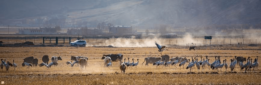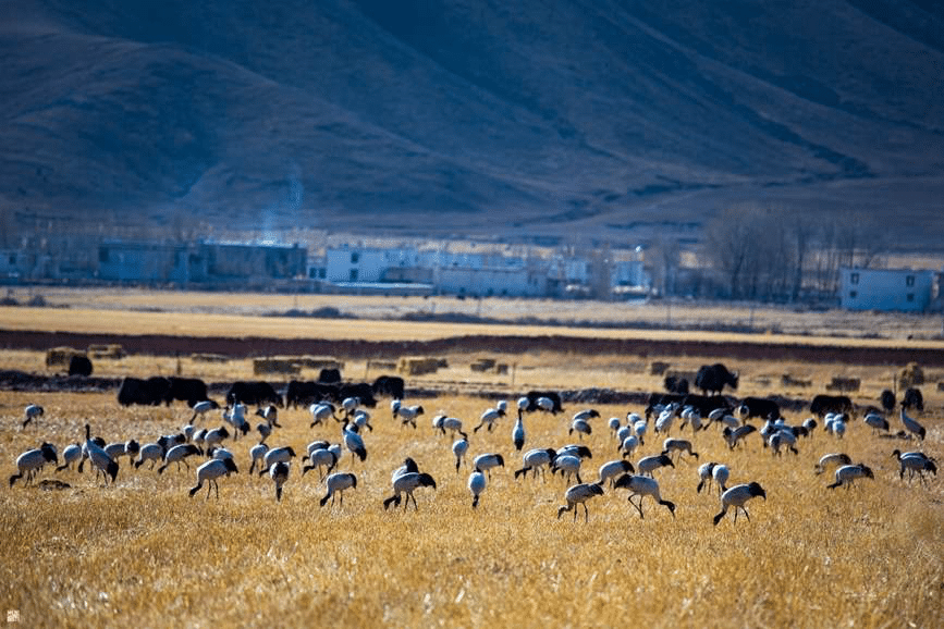 林周县地处雅江中游河谷黑颈鹤国家级自然保护区,优良的生态环境、适宜的气候,让这里成为黑颈鹤越冬的天选之地。