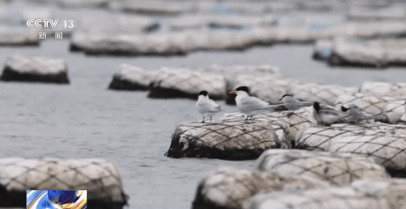 总台央视记者 马力:据介绍,这片距离海岸线大约2公里的养殖场,是中华凤头燕鸥最喜欢逗留的地方。这里有足够的食物来源、相对没有人为干扰,中华凤头燕鸥在这里可以进行早期停留,补给能量,准备进一步北归。