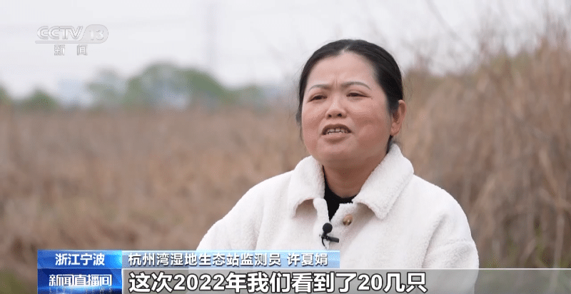 杭州湾湿地生态站监测员 许夏娟:我们以前看到卷羽鹈鹕是10只以内,2022年看到了二十几只。