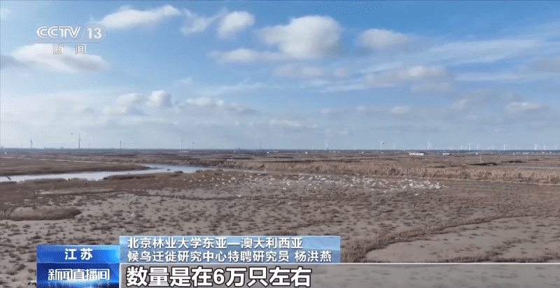 北京林业大学东亚—澳大利西亚候鸟迁徙研究中心特聘研究员 杨洪燕:3月下旬鸟调的时候,在整个条子泥这个区域数到了40种水鸟,数量是在6万只左右,所以可以说先头部队已经来了。去年我们最高峰的时候在春季数到了20万只,所以今年到目前为止,这个数量已经挺大的了,而且其中有一些珍稀濒危的物种,像国家一级保护动物黑脸琵鹭,现在将近过境的已经有200多只左右,还有我们这边特别著名的勺嘴鹬已经有了十几只,还有黑嘴鸥,已经有了将近1000只。