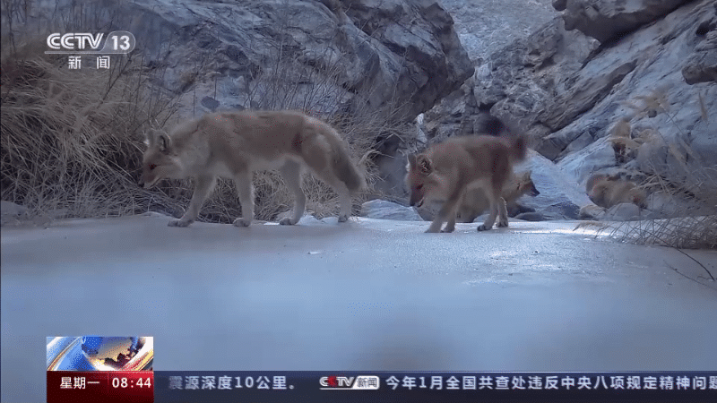 “豺狼成群”的成语在水源地实现了实景演绎。相比较野骆驼耐寒耐渴,同为犬科动物的豺和狼,都没有储存水源的生理结构优势,因此成为光顾水源地频率最高的野生动物之一。