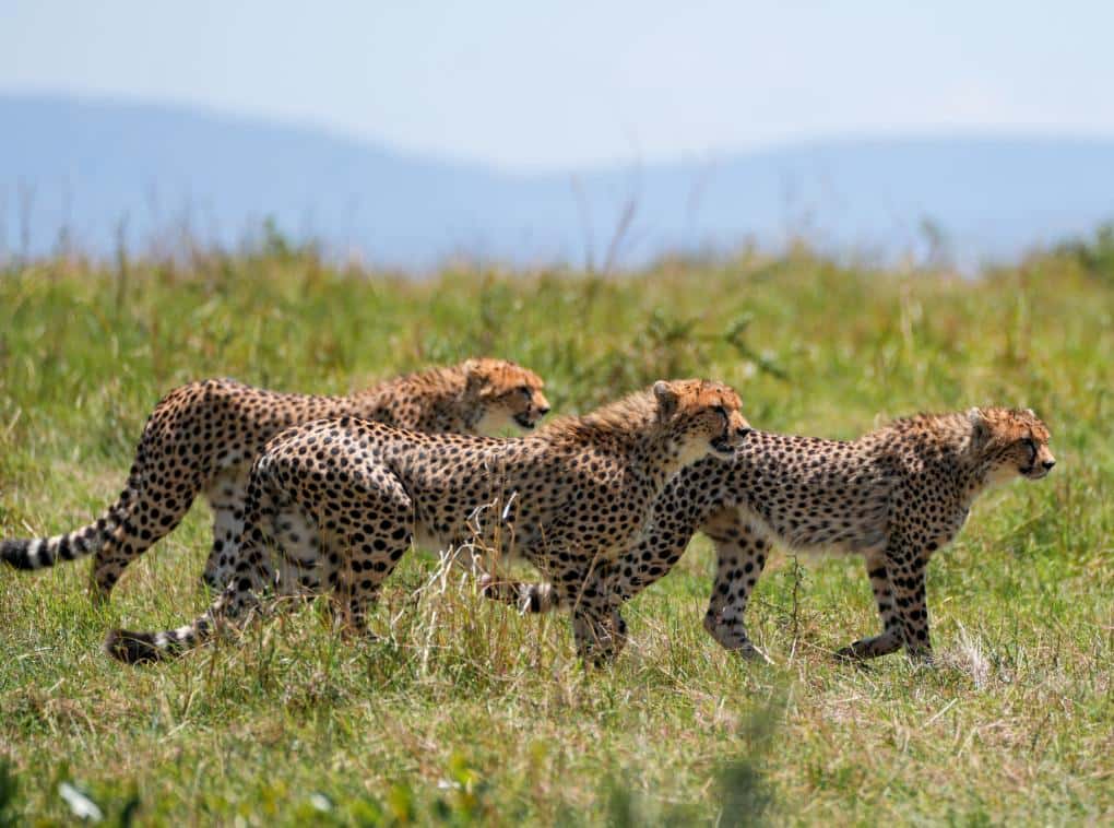 2024年10月12日,在肯尼亚马赛马拉国家保护区,猎豹在草原上活动。新华社记者李亚辉摄