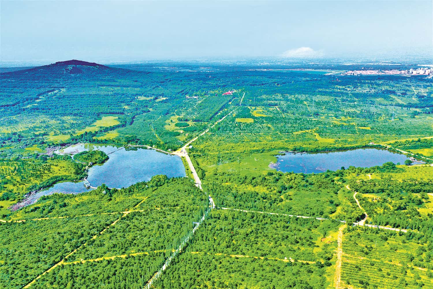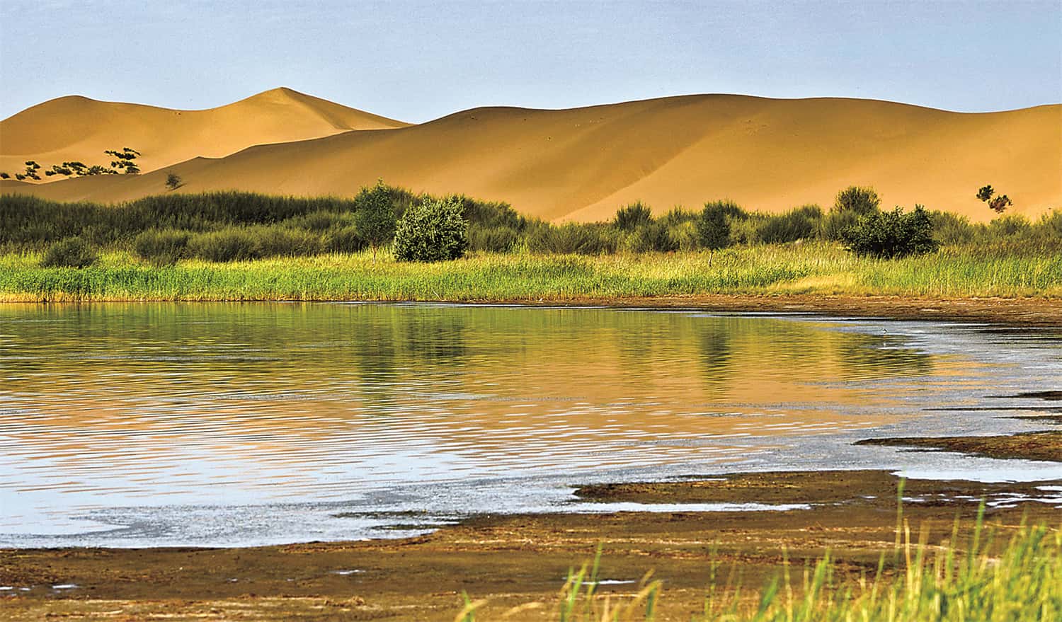 库布其沙漠七星湖畔绿意盎然 亿利资源集团供图