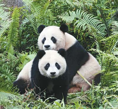 目前公园大熊猫野外种群数量增长。拖乌山、泥巴山、二郎山等重要生态廊道修复区域已发现大熊猫活动32次,重点区域大熊猫数量增加50只,四川片区大熊猫野外年遇见率由178只上升到185只。今年,在石棉县公益海区域,巡护员拍摄到两只大熊猫求偶画面,并现场采集了粪便。经科学分析,两只求偶的大熊猫分别是野化放归的“淘淘”(雄性,2012年10月在栗子坪保护区放归,放归时2岁)和“华妍”(雌性,2016年10月在栗子坪保护区放归,放归时3岁)。这是首次采集到幼年大熊猫放归成年后,融入当地种群,参与交配繁殖的确凿证据,标志着大熊猫野化放归工作取得新的成效。大熊猫“伞护效应”显著。大熊猫之外的金丝猴、雪豹、红豆杉等8000多种伴生珍稀动植物得到良好保护。国家公园内还发现一批新种,重要自然景观与遗迹同步保存完好。