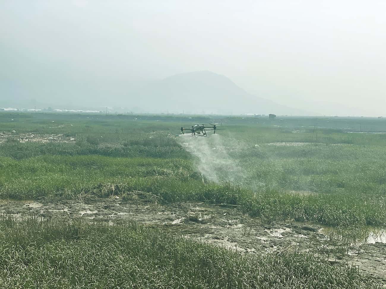 化学控制。化学控制通过施用除草剂灭除植株,治理效果受风力、潮汐周期和植株茎叶覆盖的蜡质层等因素的影响较大,且会带来环境污染风险,因此高效、低毒、低残留药剂的选择是大规模应用需要突破的难点。目前主要使用的两种除草药剂分别是25%浓度的咪唑烟酸和盖草能,后者药性强,见效快,但未能获得在滩涂等湿地环境上使用的批准,且其对环境的影响尚需进一步分析。而咪唑烟酸是美国现在正在使用的一种广谱性除草剂,使用无人机喷施法可节省人工、运输成本,治理成本较低,减少进入互花米草入侵区域难等问题。