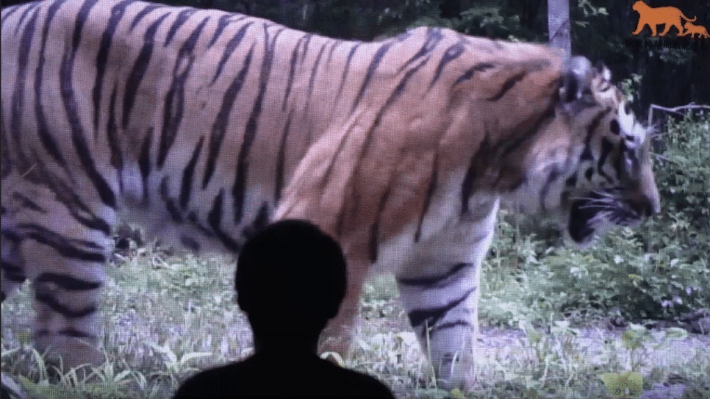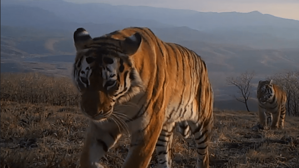 东北虎豹国家公园内架设的红外相机拍下的野生东北虎。(监测画面)
