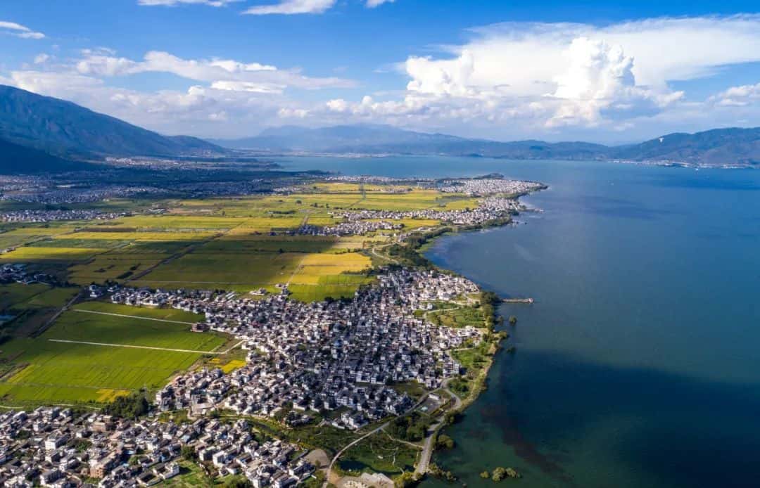这是云南大理洱海及村落景观(无人机照片)。新华社记者 陈欣波 摄