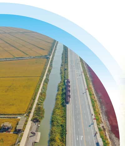 辽宁盘锦市红海滩国家风景廊道景区内的稻田及红海滩风光。
