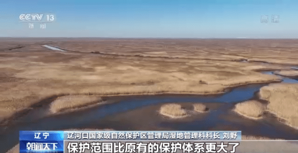 辽河口国家级自然保护区管理局湿地管理科科长 刘野:辽宁辽河口国家公园整合了辽宁辽河口国家级自然保护区、辽宁盘锦辽河口省级自然保护区、辽宁盘锦辽河国家湿地公园等8个自然保护地,保护范围比原有的保护体系更大了,保护等级也更高了。