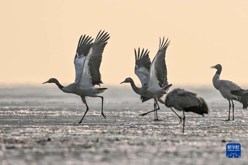 “只有人鸟共生,才能长远发展”,已成为众多黑颈鹤保护地的共同理念。在甘肃尕海,周边禁止采砂、退出采矿、禁牧休牧,湖泊告别三度干涸历史,水域面积不断扩大,黑颈鹤回归翱翔;在云南大包山,当地实施栖息地生态修复项目,恢复湿地超过9000亩,为黑颈鹤预留更多栖息生态空间。