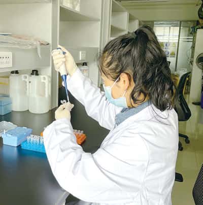 中国科学院昆明动物研究所科研人员在开展绿孔雀的遗传背景检测。董 锋摄(人民视觉)