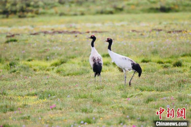 图为玛可河国家湿地公园内的黑颈鹤。 班玛县委宣传部 供图