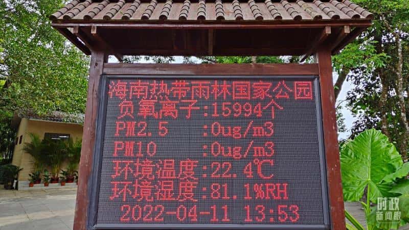海南热带雨林国家公园的电子屏显示实时环境质量指数。(总台央视记者杨立峰拍摄)