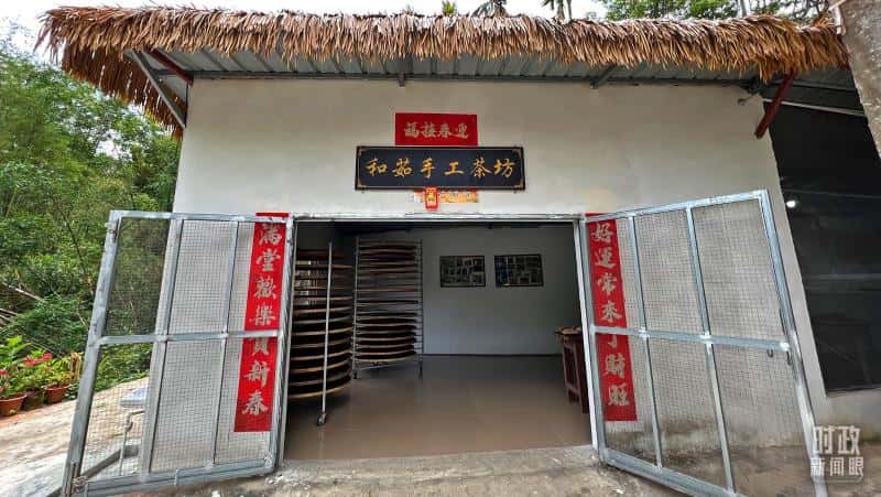 王柏和、王菊茹夫妇开的手工制茶作坊以及他们制作水满大叶茶时的工作照。(总台央视记者邢彬、央广记者潘毅拍摄)