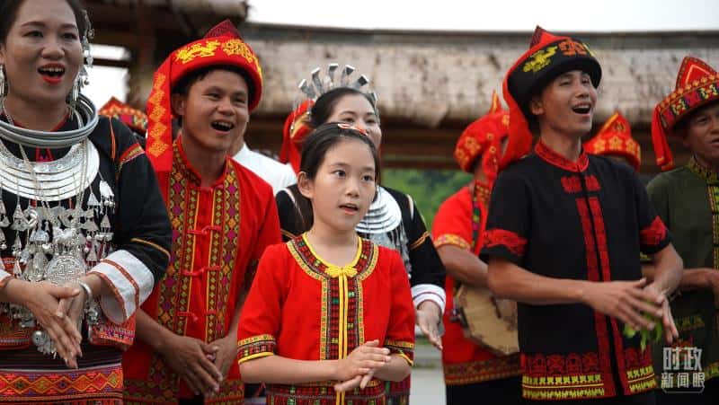 身着民族服饰的当地村民在毛纳村广场上唱起民歌。(总台央广记者潘毅拍摄)