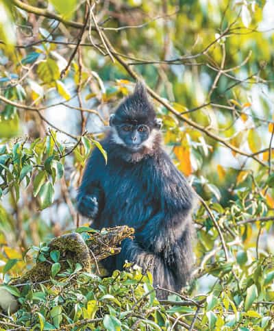在重庆市南川区金佛山国家自然保护区拍摄的黑叶猴。瞿明斌摄(人民图片)