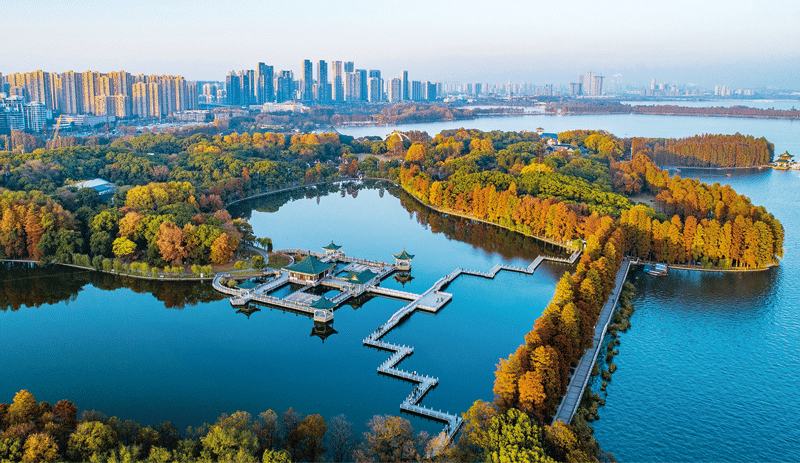 图为无人机拍摄的湖北省武汉市东湖绿道。新华社记者 肖艺九/摄