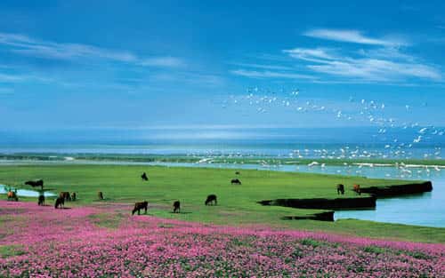 青海湖的蓝色美得令人心醉,这种蓝色由于太过纯洁而近乎于青,所以当地蒙语称它“库库诺儿”,藏语称它“措温布”,意思均为青蓝色的海。青海省因青海湖得名,由此不难看出青海湖在青海的重要位置。