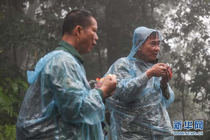 11月16日,工作人员在海南霸王岭调查海南长臂猿期间吃干粮补充体能 新华社记者 蒲晓旭摄