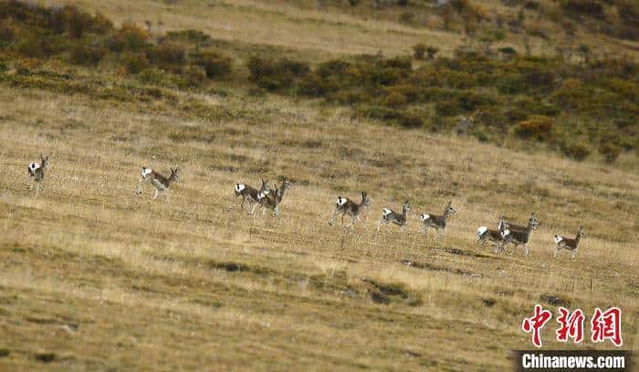 图为臀部呈白色桃心的藏原羚排队奔跑 三江源国家公园森林公安局 供图