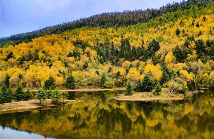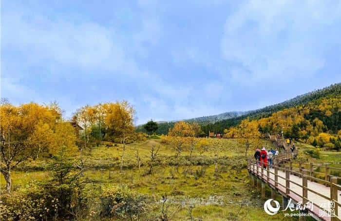 深秋时节,云南香格里拉普达措国家公园内层林尽染,草甸、牧场、森林、高山由绿及黄,由黄及红,呈现出极美的渐变色,层次分明的秋景成为众多摄影爱好者的天堂。