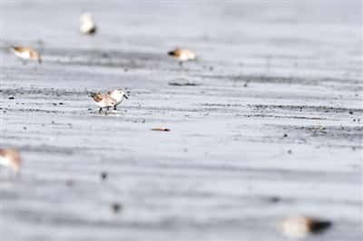 滦南湿地的潮间带滩涂是渤海湾仅剩不多的大面积且连续的天然滩涂湿地,是红腹滨鹬等众多鸻鹬类的重要觅食地。目前正值鸻鹬类水鸟南迁高峰,为了给申遗提供科学数据支撑,北京师范大学张正旺教授科研团队于2020年9月下旬在此开展了迁徙水鸟调查。本次调查共记录到37种水鸟,共11万只,其中翘鼻麻鸭近5万只,环颈鸻1.8万只,红嘴鸥、反嘴鹬各1万余只,黑腹滨鹬5000只,国家I级重点保护鸟类遗鸥3000只,并记录到国家Ⅱ级重点保护鸟类黄嘴白鹭。(雷维蟠 北京师范大学)