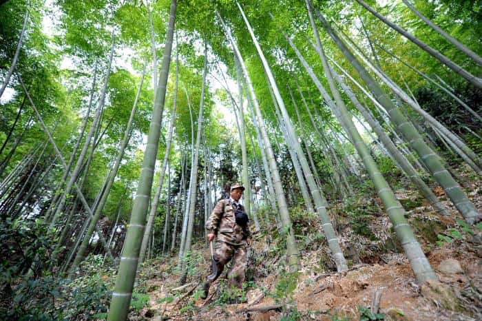 除了秋冬季节护鸟,肖冬样还担负着春夏护林的任务。每天8时30分,肖冬样准时从家里出发,开始一天的巡山工作。沿着铺设在山林间鹰厦铁路线步行两三公里,蜿蜒进入山林深处,沿途除了铁路两侧的山岭与溪流外,只剩迎面偶遇的铁路清洁员能说上一两句话。肖冬样告诉记者,每个生态护林员一天要巡山8小时,路线都是各自所管辖的片区。春夏秋冬,不论是晴雨都是如此,有时为了护林需要,凌晨四五点就要起床出发。面对龙虎山美丽的风景,肖冬样无暇欣赏,因为巡山的路上,危险无处不在,必须时刻保持警惕。