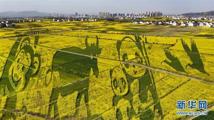 这是洋县环线旅游观花线上的艺术花海图案“四宝乐园”(3月14日摄) 新华社记者 陶明摄