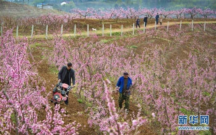 目前,洋县以梨、桃、猕猴桃、柑桔为代表的有机果品面积7496亩,其产品是市场上的畅销品。洋县龙亭镇柳山村村民(前)在桃园中春耕(3月22日摄) 新华社记者 陶明摄
