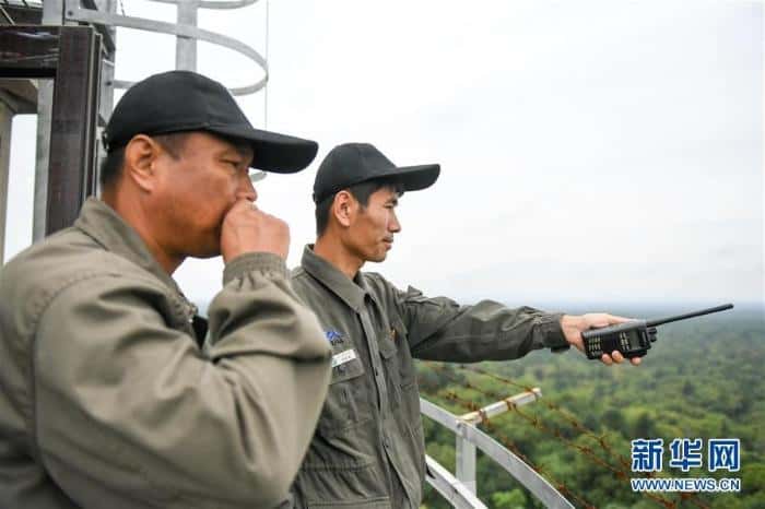 9月2日,巡护员在吉林长白山国家级自然保护区维东自然保护站内的瞭望台上探查 新华社记者 颜麟蕴摄