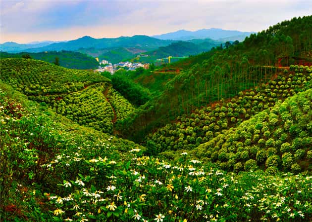 广西壮族自治区苍梧县六堡镇种植栀子花治理石漠化,促进了贫困群众增收
