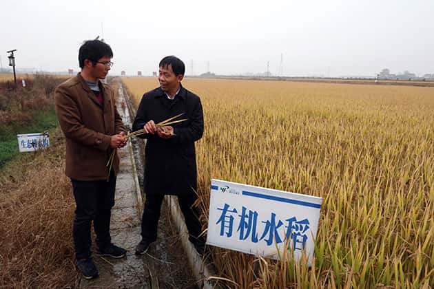推动贫困地区发展“三品一标”(无公害农产品、绿色食品、有机农产品、农产品地理标志)产品,实现绿色惠农富农强农。图为安徽省六安市裕安区永裕中心村通过环境、水、土壤、大米检测绿色认证的有机大米,亩产收入可达万元以上,远超传统农业收益。