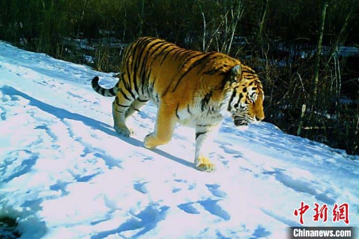 3月至今,该保护区多次通过红外相机拍摄到了野生东北虎的高清影像资料。画面中,体态丰硕的东北虎正悠闲地在雪地上逡巡。据悉,此次发现的4只野生东北虎,其中2只已经在保护区“安家”生活,并开始了领地巡查活动。另外2只刚刚结伴自俄罗斯过境到保护区内。