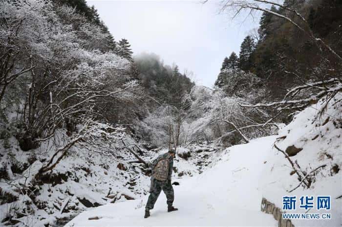 12月13日,巡护员张雄在巡护途中 新华社发(杜哲宇摄)