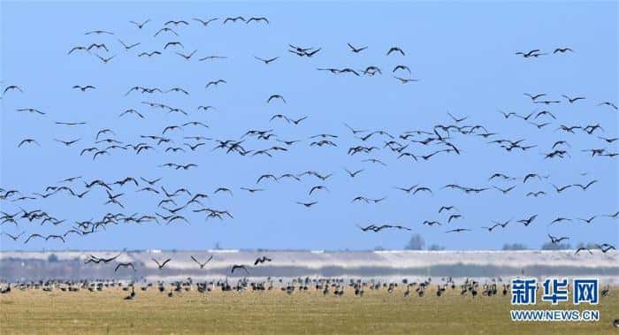 近日,大批候鸟飞抵江西鄱阳湖湿地越冬。