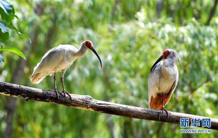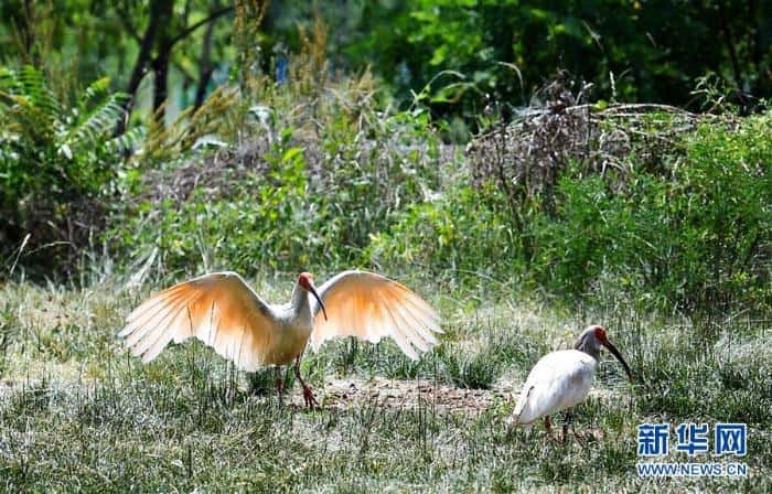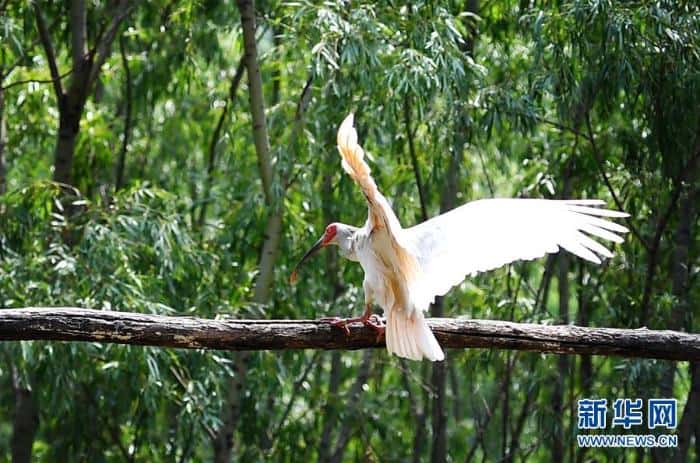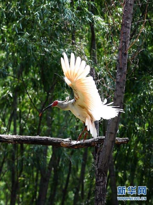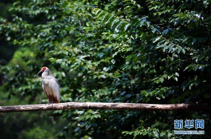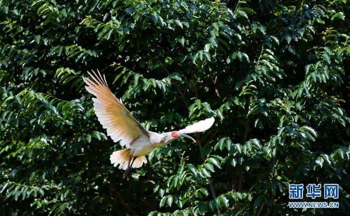 6月13日在陕西省铜川市耀州区朱鹮野化放飞地拍摄的朱鹮 新华社记者 刘潇摄