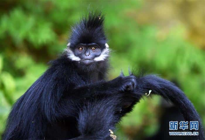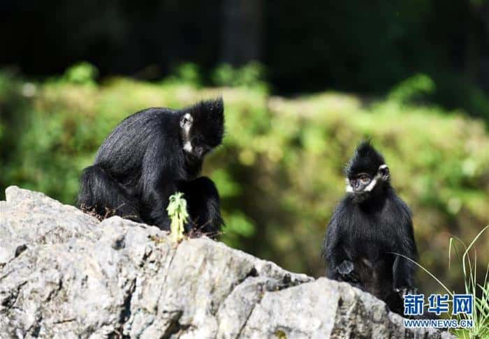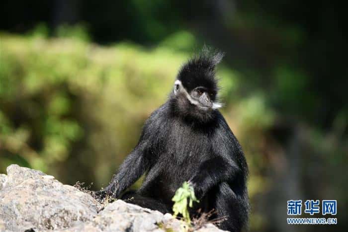 这是6月4日在麻阳河国家级自然保护区大河坝观测点拍摄的黑叶猴 新华社记者 杨文斌摄