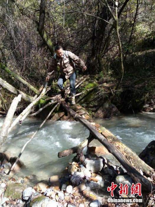 然而,如此广阔的区域内在此之前却从未成功拍摄到大熊猫的踪迹。图为行走在山林间的巡护员。勿角保护区 供图