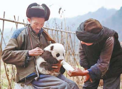 1991年冬天,陕西佛坪国家级自然保护区管理局员工汪铁军和同事冒雪巡山。行至三官庙,见一只大熊猫幼崽趴在雪地枯草里,奄奄一息。汪铁军赶忙把它搂进棉袄里,一行人跋涉俩小时,摸黑赶回三官庙村。“何长林家小孙子刚1岁,他家肯定有奶粉!”