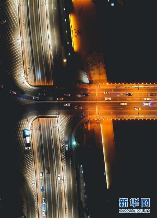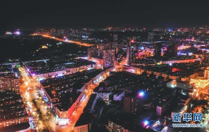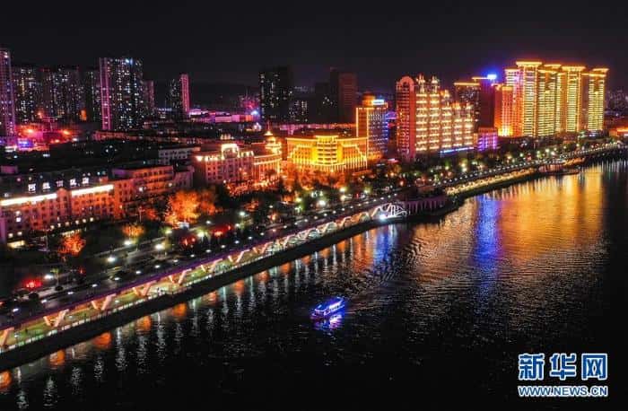 这是5月11日无人机拍摄的松花江畔吉林市城区夜景 新华社记者 许畅摄