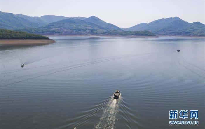游船行驶在吉林市松花湖水面上(5月12日无人机拍摄) 新华社记者 许畅摄