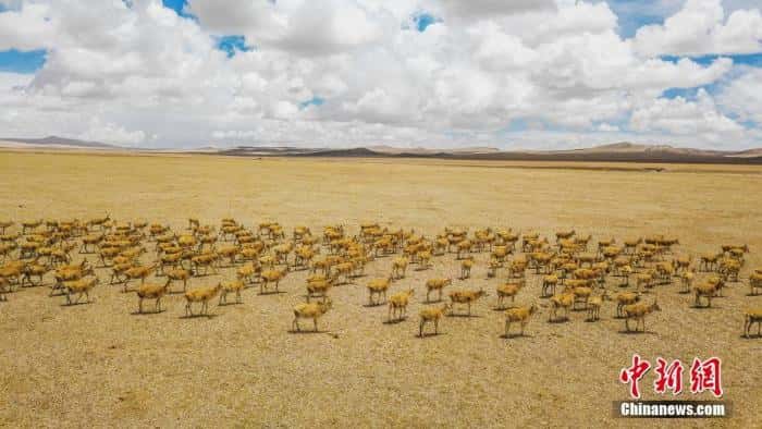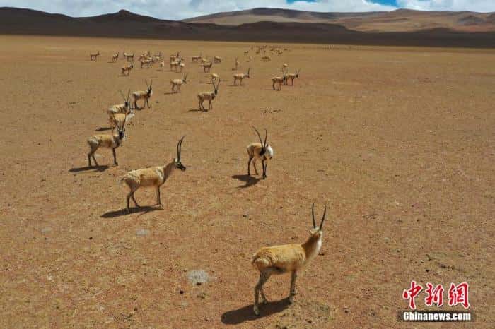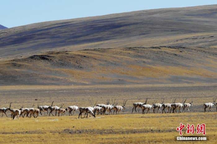 西藏阿里地区改则县官方22日透露,近日,该县古姆乡附近出现大规模藏羚羊迁徙现象,规模约3000头左右,分公羊群和母羊群。如此大规模的迁徙现象近年罕见,十分壮观。