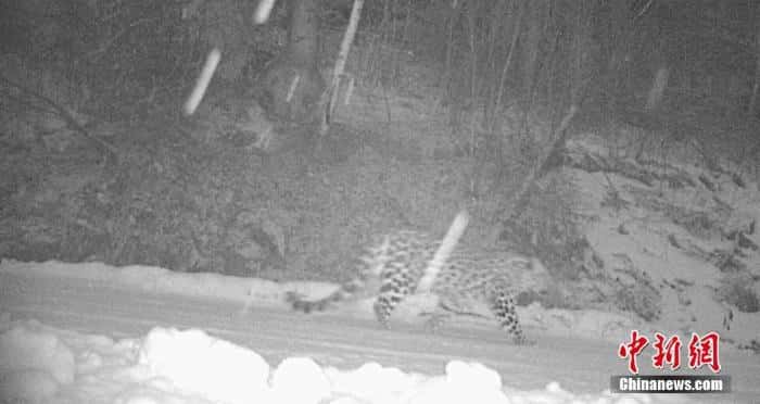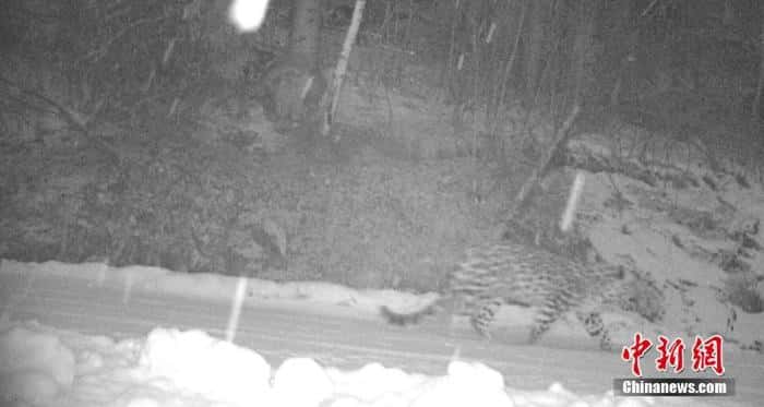 从2014年开始,黑龙江穆棱林区曾多次发现东北虎、东北豹的活动足迹和猎物现场,但此次拍摄到东北豹的活动影像前所未有。画面显示,在风雪交加的森林中,一只体形健硕的东北豹正步履匆匆地顺着保护区防火公路行走。(文/王天驰 杜继新 王琳 东北虎豹国家公园管理局穆棱局供图)