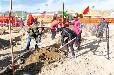 日喀则市定日县热火朝天的植树现场 刘毅 记者 袁海霞 摄