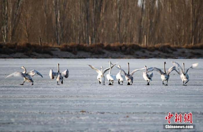 2月底,随着冰雪消融,气温上升,甘肃敦煌阳关国家级自然保护区候鸟数量明显增多,该保护区渥洼池内数百只白天鹅、白额雁、白鹭、野鸭在这里飞舞、觅食,形成一幅幅大漠敦煌塞上风光美景图。截至目前,当地已监测到国家Ⅰ级保护鸟类白尾海雕2只,国家Ⅱ级保护鸟类大天鹅13只,国家Ⅱ级保护鸟类白额雁13只,国家重点保护鸟类白鹭16只、苍鹭2只,绿头鸭、赤麻鸭、鹊鸭等800余只。